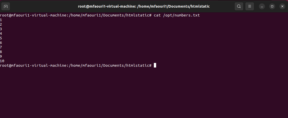 CMD ["bash", "-c", "seq 1 10 > /data/numbers.txt && tail -f /dev/null"]