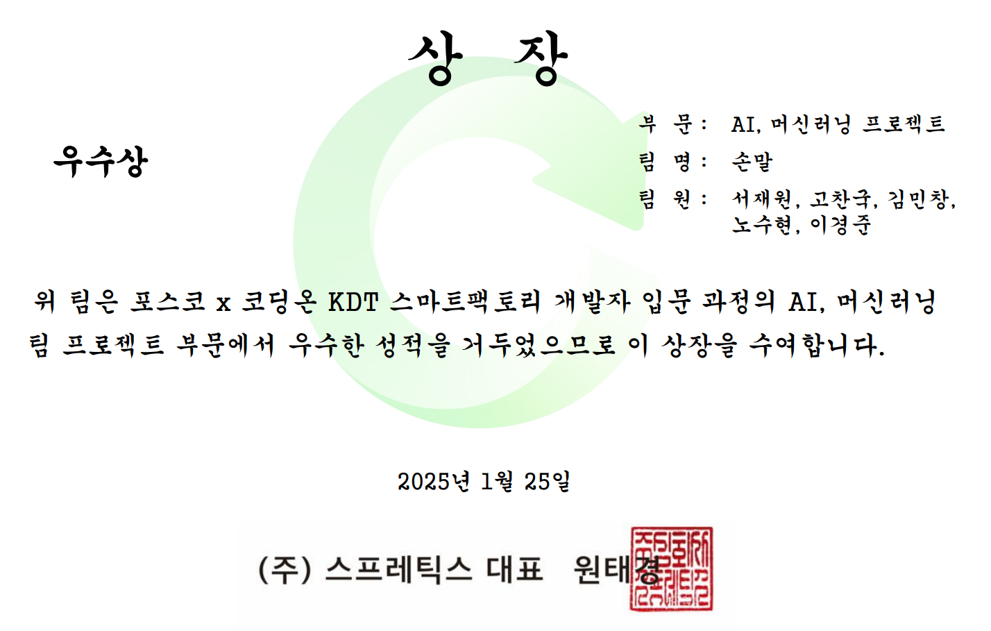 | 최종 발표 준비 | 2025-01-23 ~ 2025-01-24 | 발표 자료 제작 및 최종 검토 |
