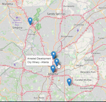 This application also uses the leaflet api to generated a map. This map will pinpoint your current location and will also populate the map with the location of the events that came from the search.