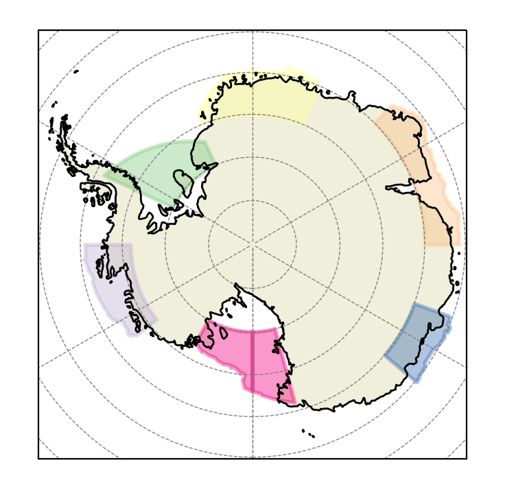 @alicebarthel, this PR adds the features we discussed to For now, I would like you to take a careful look at each of these 6 (just on GitHub is fine) and make sure they make sense: The Ross is divided into 2 halves because it crosses the date line (antemeridian). That's just a weird requirement of geojson files. Here's a polar stereographic image for reference: The other feedback I need from you is what zmin and zmax should be. Currently, they're -1000 and -200, but that's just because that happened to be what we used for the shelf in our previous Antarctic shelf regions. |