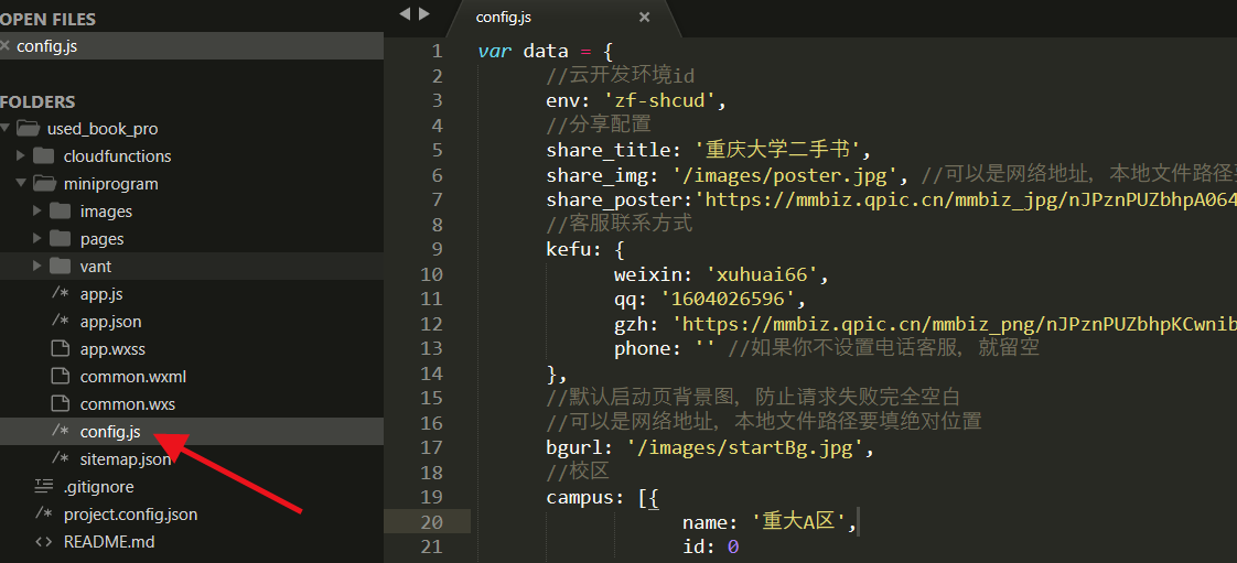 找到config.js文件,然后按照我写的注释更改为你自己