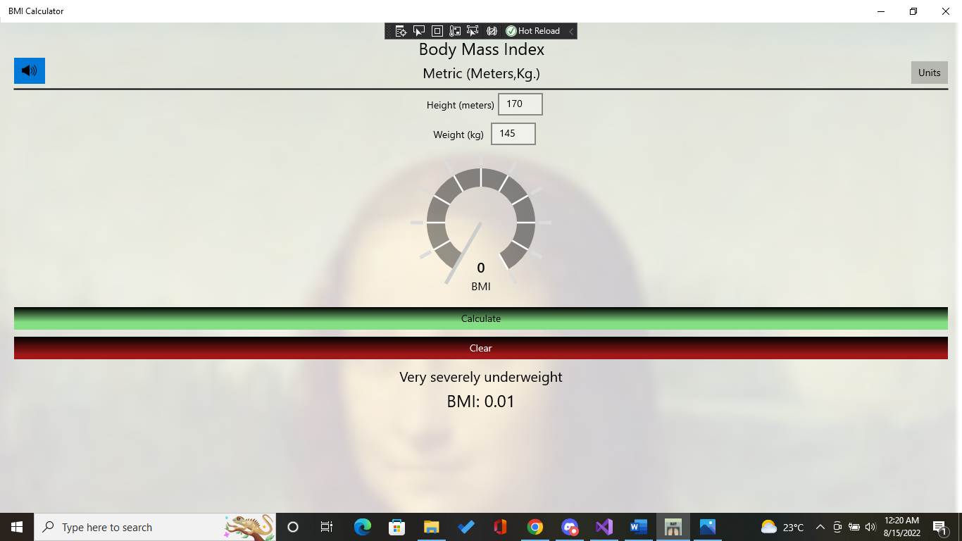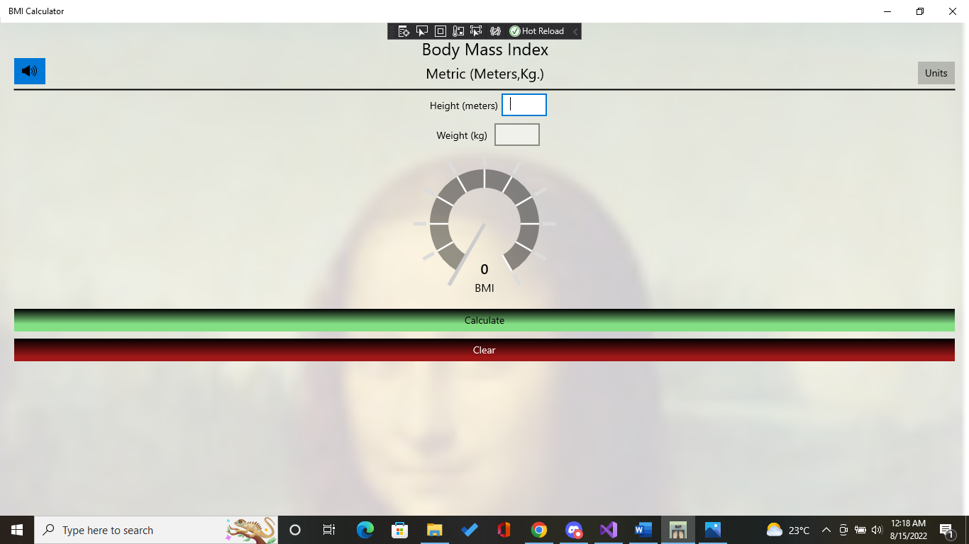 The application has Speech that you can turn ON and listen to the BMI result