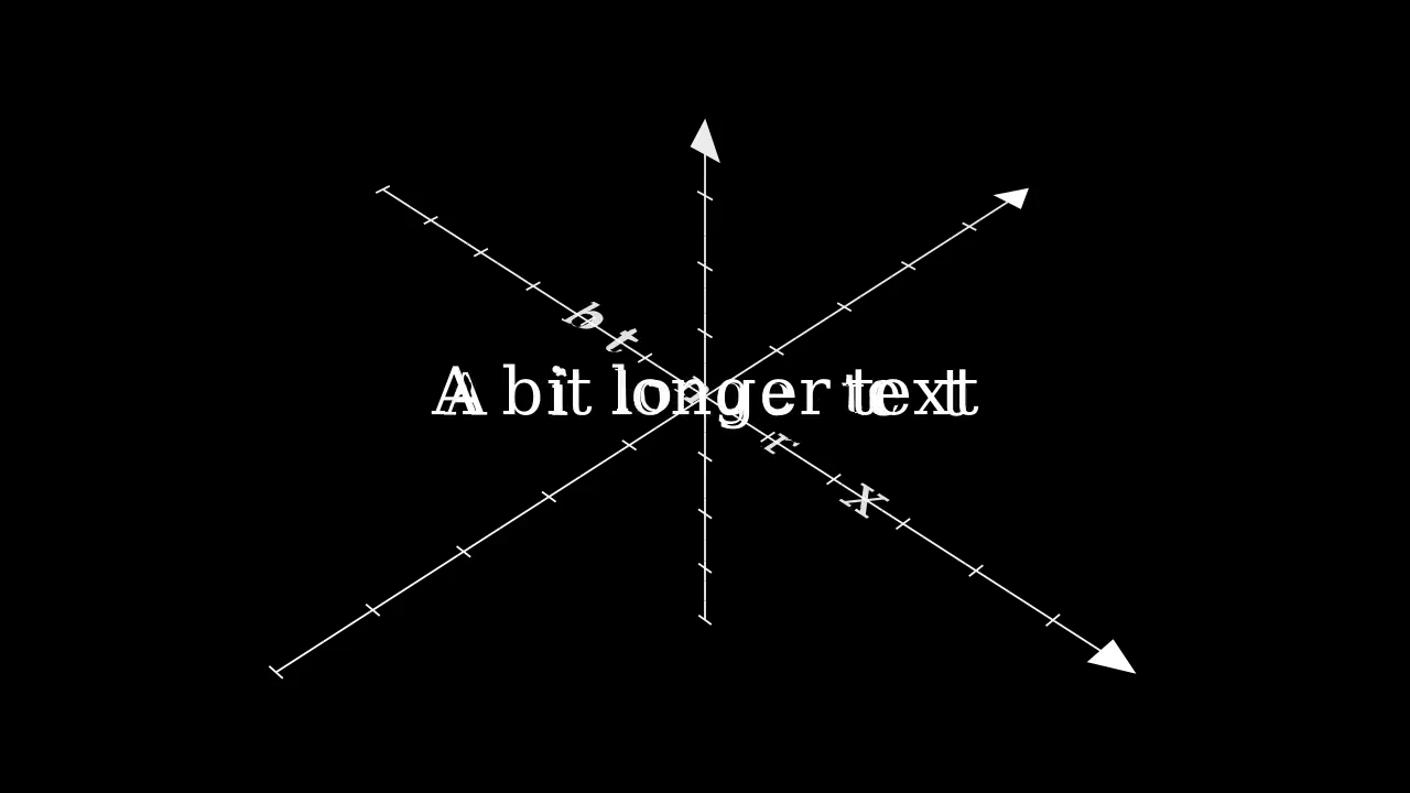 For instance, in the examples provided below, the transformation from "Short text" to "A bit longer text" actually shows "Short text" -> "A i lo ge te t". The other letters "b t n r x" are displayed on the 'normal' axis, as if they were not concerned by the add_fixed_in_frame_mobjects() instruction.