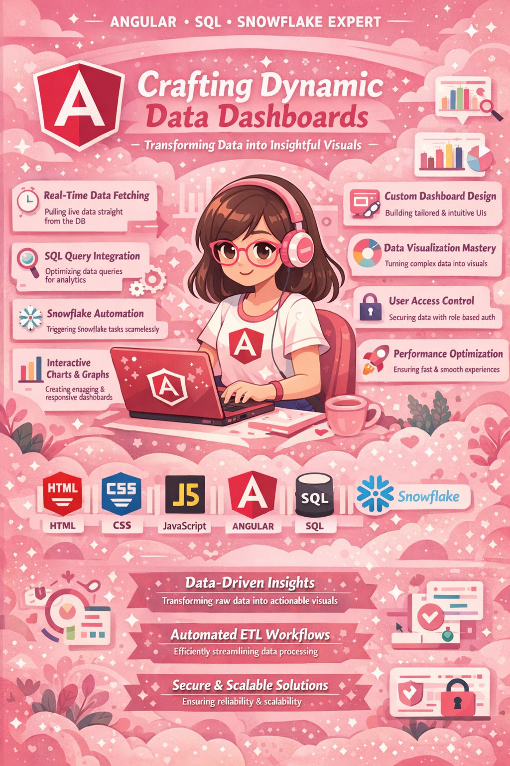 πΉ Writing optimized SQL queries to fetch large analytical datasets πΉ Designing custom dashboards that visualize Snowflake data πΉ Configuring Snowflake adapters triggered from Angular applications πΉ Transforming complex data into interactive charts, tables, and insights