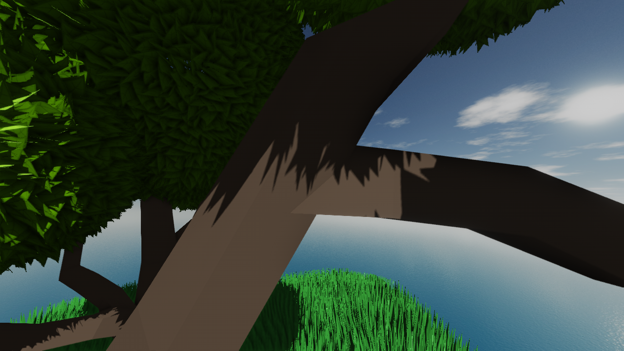 The scene was built in a way that the contrast of lighting, bloom and hdr post processing could be visible from various angles. Therefore we had a simple camera that could swirl around the scene allowing for example a good contrast of the sun's liginting and the tree's shade.