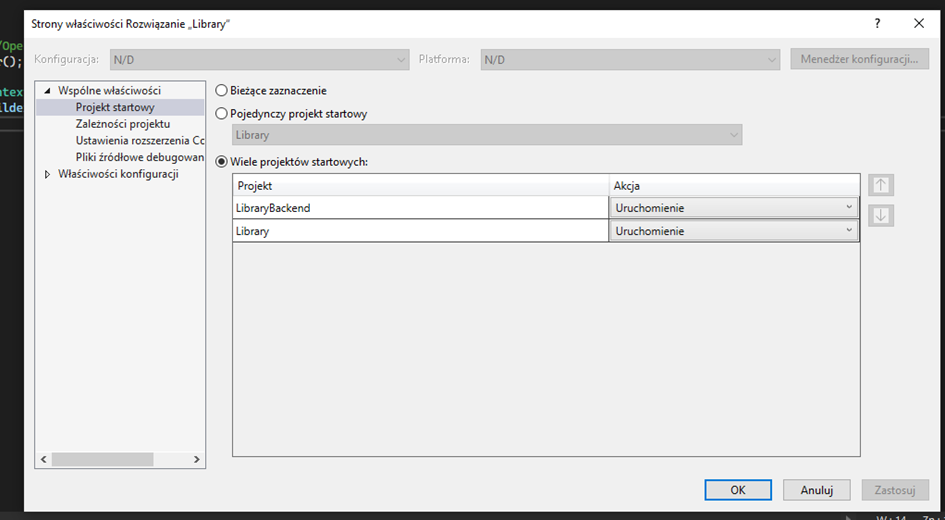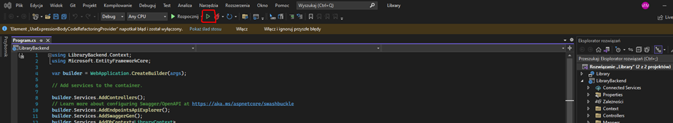 Następnie należy otworzyć projekt oraz ustawić odpowiedni connection string