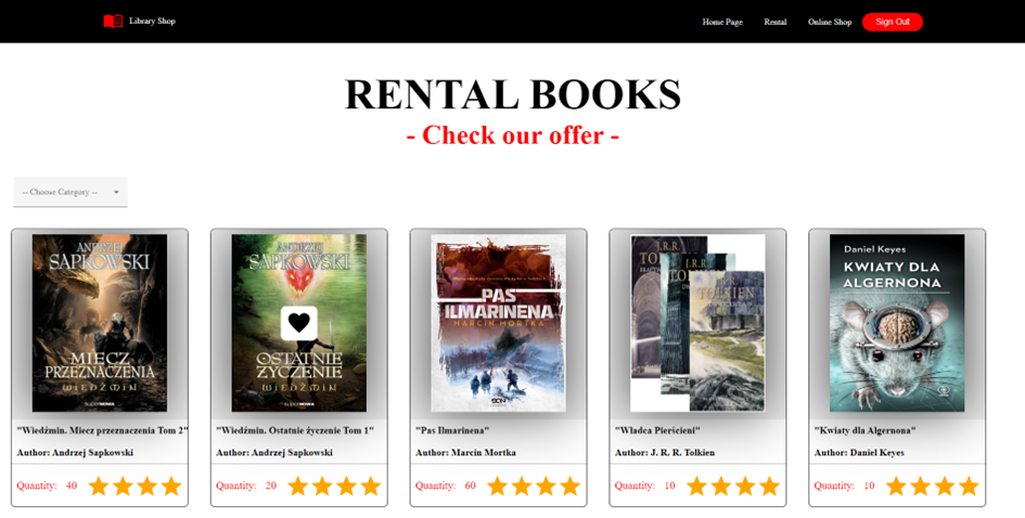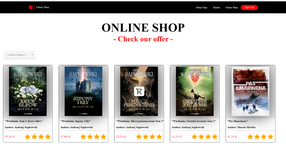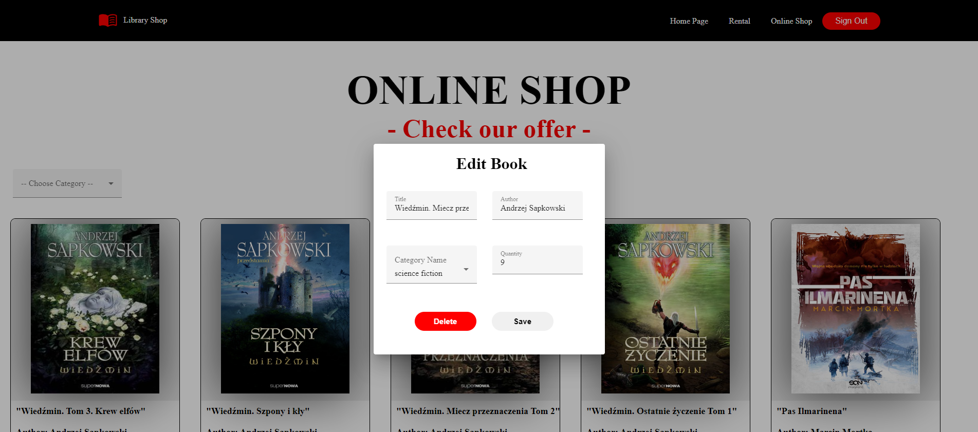 - W aplikacji są dostępne dwa typu użytkowników (admin oraz user) • Admin – usuwanie, edycja książek oraz przeglądanie książek