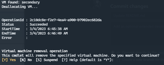 Any previous deployment can be destroyed as well by running the script with "-destroy" and then specifying the VMName.