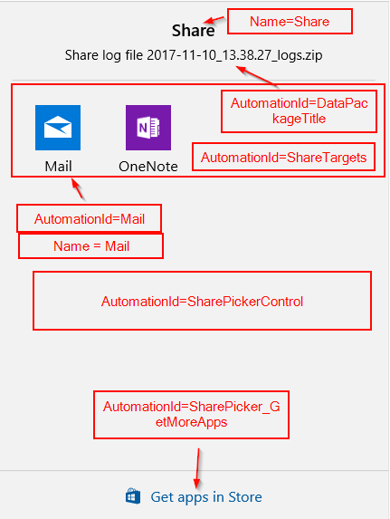 - When I click on a button Share dialog pops up giving me windows store apps I can use to share my log file such as Mail, OneNote, etc