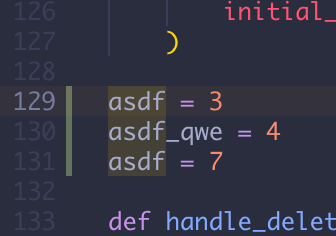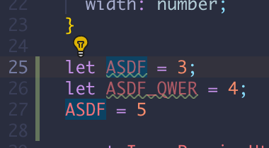 ^ Here, the `asdf` symbols are highlighted, but the `asdf` portion of `asdf_qwer` is also unexpectedly highlighted, even though it belongs to a different symbol.