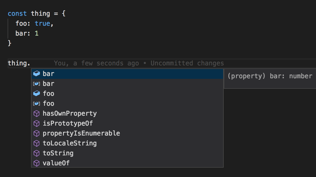 The typescript autocomplete suggestions are a great feature, when you're working on a typescript project.