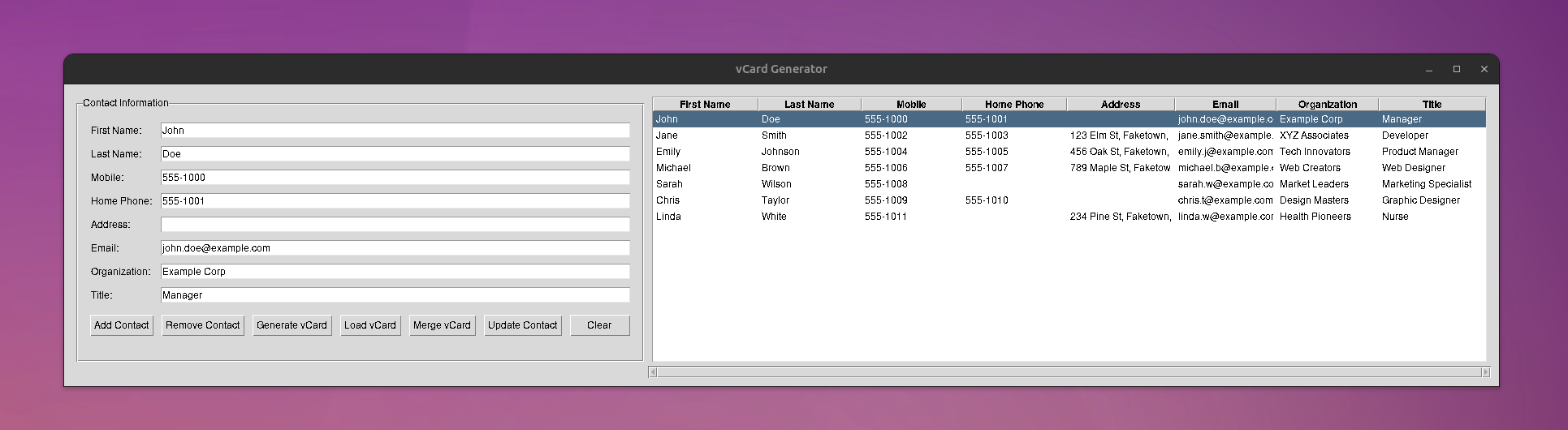 - Run the application and use the GUI to manage contacts and vCards.