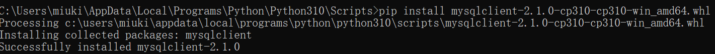 安装MySQLdb,我的Python版本是3.10,所以mysqlclient是2.1.0版本