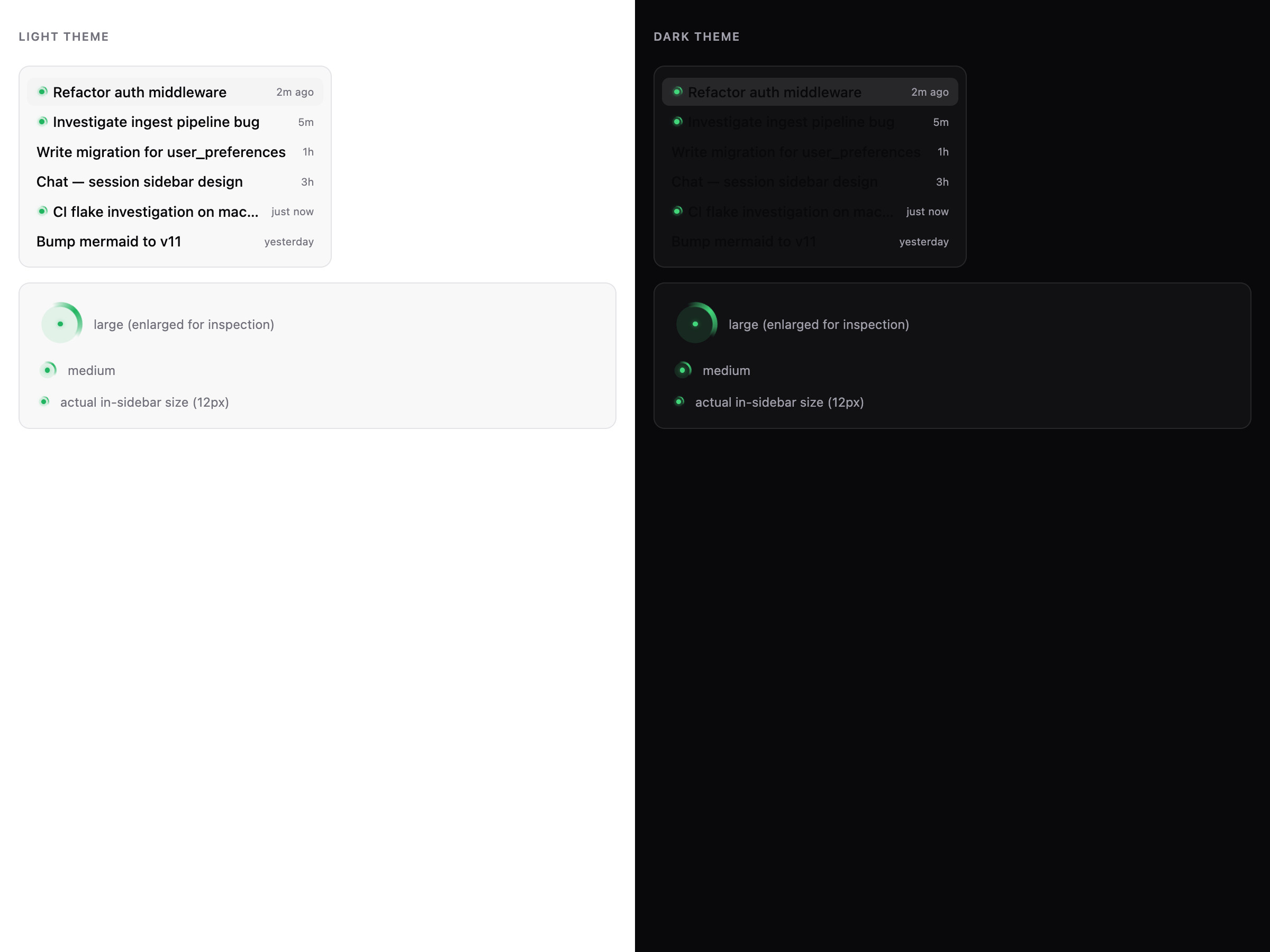 Adds a subtle "alive" marker to each running session in the sidebar so users can tell at a glance which sessions are busy without opening them.
