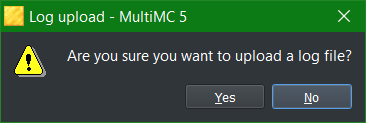When I use the Upload feature in the Minecraft Log area of a MultiMC instance, I will be told that "a link has been placed in my clipboard." I'm not asked if I want this; I'm told that it has occurred.