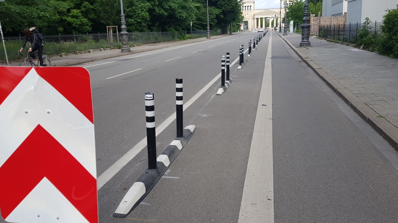 Eine der ersten Protected Bikelanes in München als Pilotversuch in der Brienner Straße im Mai 2022.