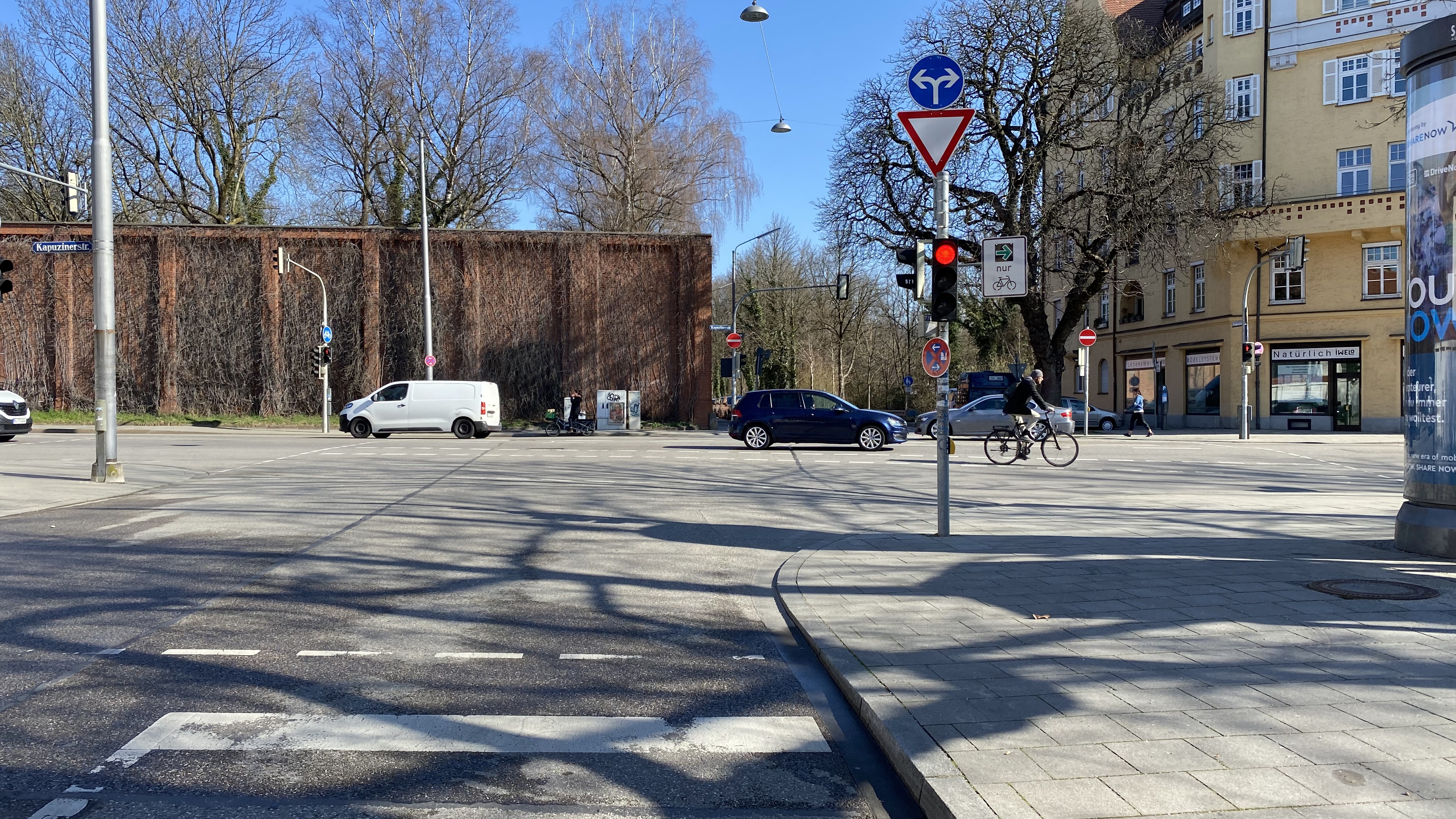 Abb.1: Grüner Pfeil für Rechtsabieger, Kapuzinerstraße, München. Image Credits: MunichWays, Lizenz: CC0 1.0 Universal