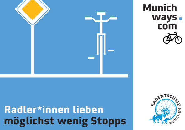 Abb.2/3: Vorfahrt Nederlinger Straße und Radler*innen lieben möglichst wenig Stopps Sticker. Image Credits: MunichWays, Lizenz: Creative Commons CC0 1.0 Universell-Lizenz
