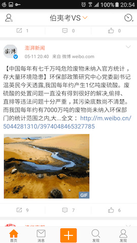 2016.8.15更新 -----【新特性】下滑浏览微博的时候,会自动隐藏顶部和底部的导航栏,给用户更多的浏览控件