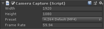 It has a few properties for recording video: frame dimensions, preset and frame rate.