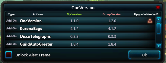 is a Wildstar add-on which tracks the versions of supported add-ons, shares the version information between group members, and provides several in-game alerts
