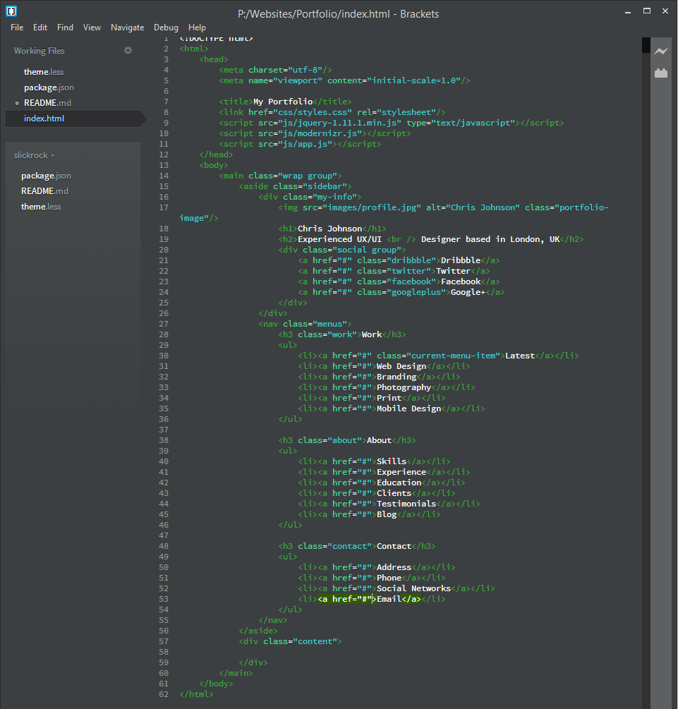 A dark, clean, minimal theme for the Brackets text-editor.