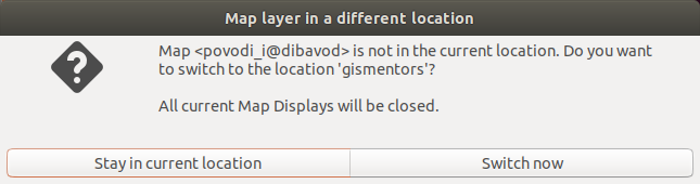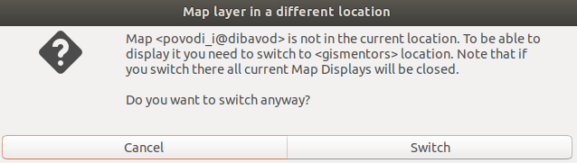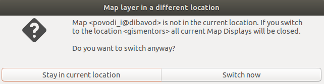 Map <bla> is not in the current location. To be able to display it you need to switch to <blabla> location. Note that if you switch there all current Map Displays will be closed. Do you want to switch anyway?Too long? My intention is to "explain" in short that to display a map from a different location the user needs to switch there.