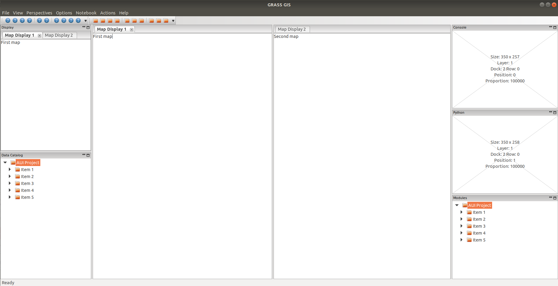 Yes, we can make it as I suggested here: (1) . So we need to either use the Data Catalog as the Content pane (as this PR suggests) - then all Map Displays will be dockable, or we could use the first opened Map Display as the Content pane and all other Map Displays except the first one will be dockable - this means, however, allowing the user to change it, e.g. suddenly a user wants to place the first Map Display on the second monitor, so he/she changes some settings and the first Map Display become dockable while the second Map Display becomes the Content pane. I would add that people are already used to have some data organization and layer management on the left side and tools on the right side, so I would keep the arrangement in (1). And also having the Map Display in the center looks impressive. :-) Any suggestions about that? Which idea regarding the Content pane you like more @veroandreo? Do you have any other ideas? (1) https://trac.osgeo.org/grass/attachment/wiki/wxGUIDevelopment/SingleWindow/single_window_layout.png |