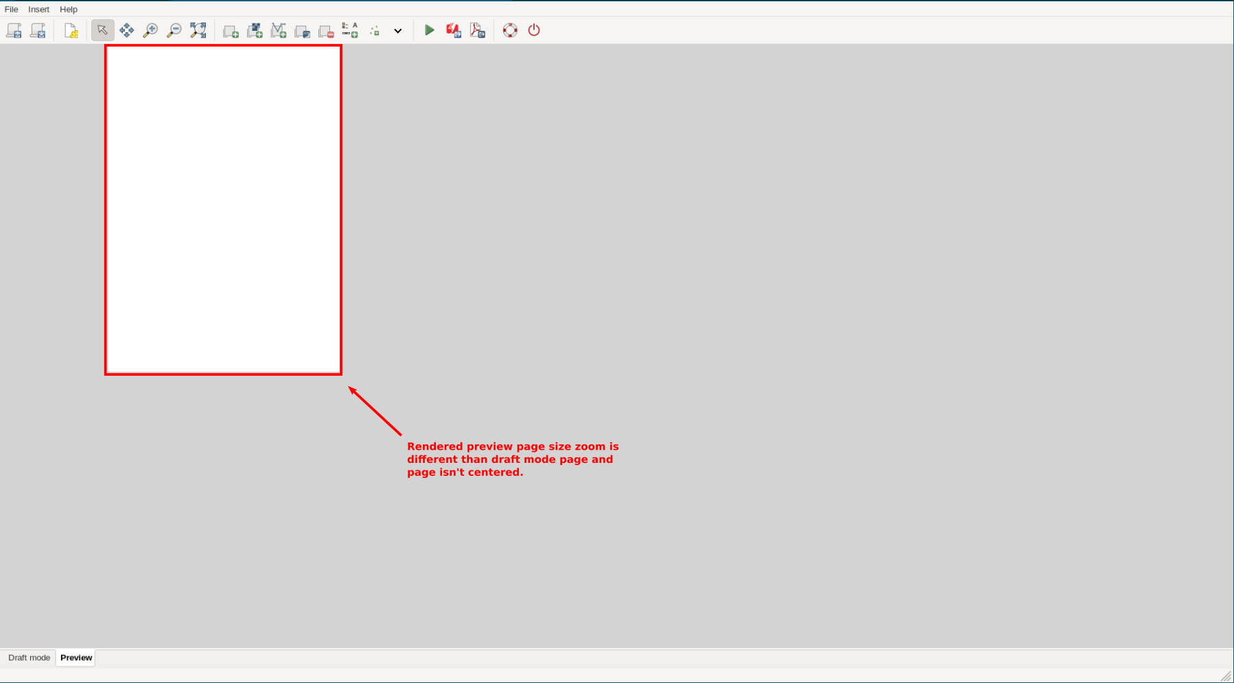 Rendered preview page doesn't have same zoom as draft page and page isn't centered.