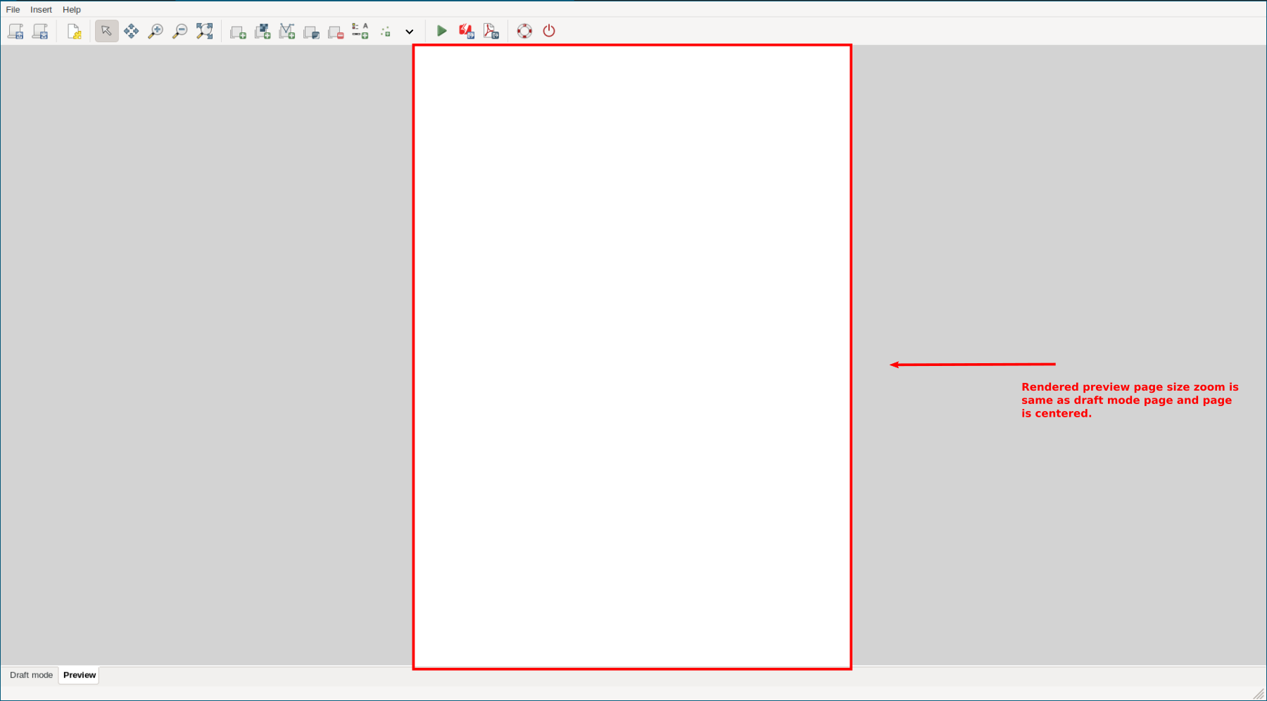 Rendered preview page should be have same zoom as draft page and be centered.
