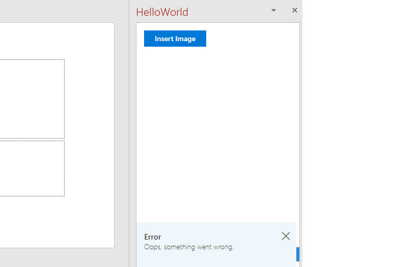 I followed the Office PowerPoint add-in tutorial from the Microsoft Doc. link below still getting error "Something went wrong" like that. I tried only up to the first "Test the add-in" part which insert bing image into the slide.