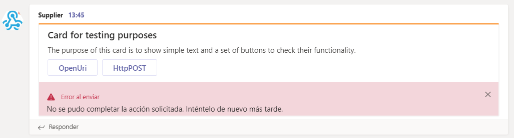 I tested the second Azure Function in an isolated way and works fine so I don't know how to get the error from Teams and investigate a bit further.