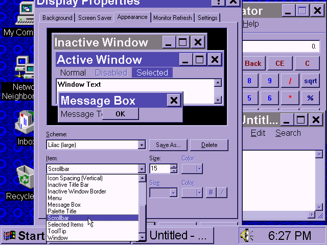 It would be neat if there was an option to create Windows Color Schemes, like what Windows 95 had.