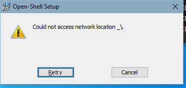 When I try to install OpenShell versions 4.4.160 and 4.4.152 it has an error about "Can not access network location _."