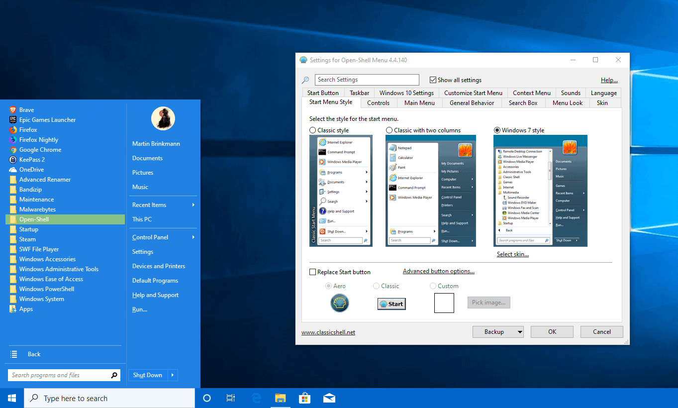 With Open-Shells, you can migrate settings across machines, backup your shell configuration, and even share custom skins with the Open-Shells community.