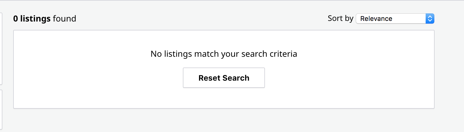 Currently we leave the user at a dead end when no results are found. Instead of leaving them with a vague message, can we provide a button to Reset Search?