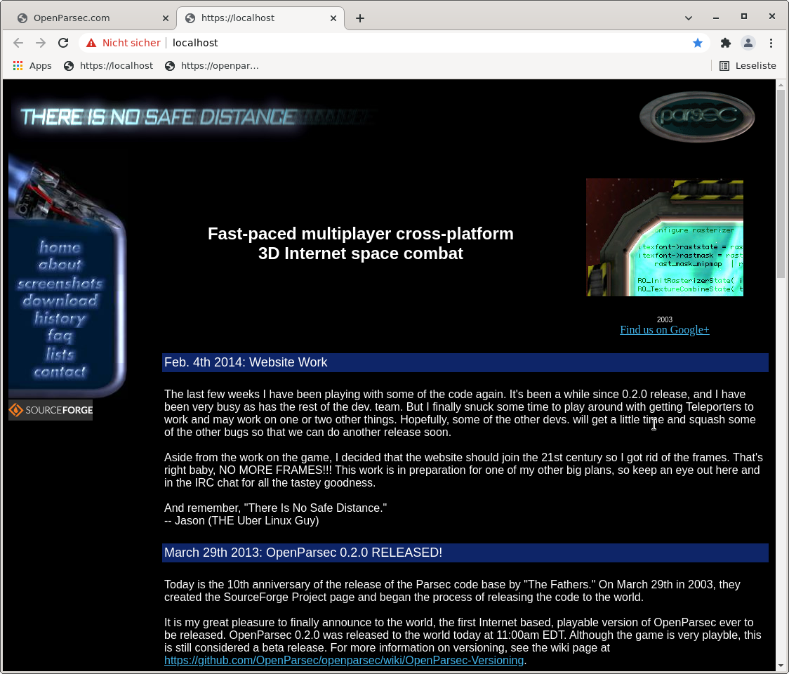With this commit the hardcoded "http://openparsec.com" is replaced with