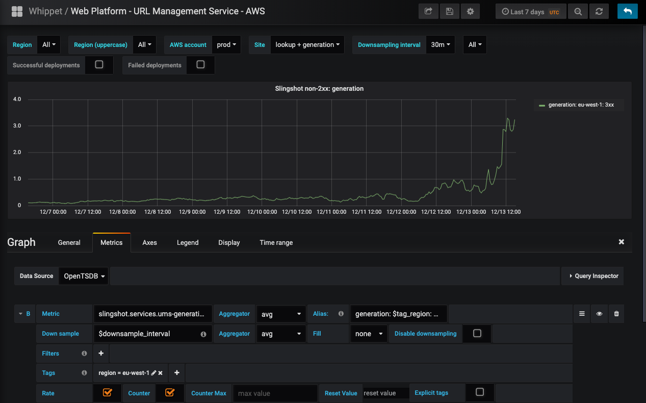 In certain circumstances, we see avg aggregation constantly shows exponential rise from the past to the present time. Here's a graph that's trying to show 3xx responses per second per instance.