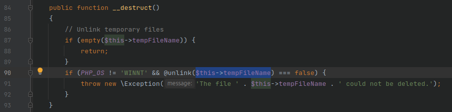 The XMLWriter class has a __destruct() method, the unlink() function is called in there with an object's property as a parameter (See the picture below). Because all the properties of an object can be controlled by an attacker via POI vulnerability, this simple POP chain consists of only one method call, but it can cause arbitrary file delete!