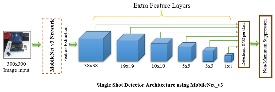 The dataset has been trained using SINGLE SHOT DETECTOR (SSD) for localisation of images, before passing through the mobilenet network layers.