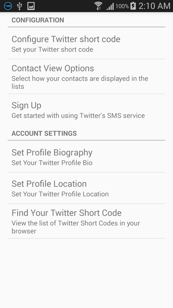 An Android application that provides a way for users to use Twitter without access to the internet. The app uses Twitter's SMS commands to tweet, fetch tweets, retweet and favorite. This app provides a beautiful user interface for the user.