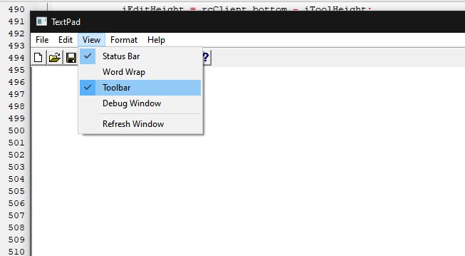 -Added function to View > Status bar & Toolbar. Does not work correctly