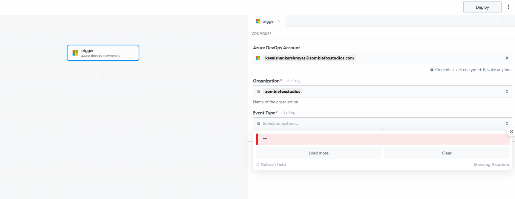 Cannot Assign event type in my trigger string. It returns two empty parameters as options and nothing is selectable. All my previous pipelines are also broken because of this as I am unable to trigger any triggers