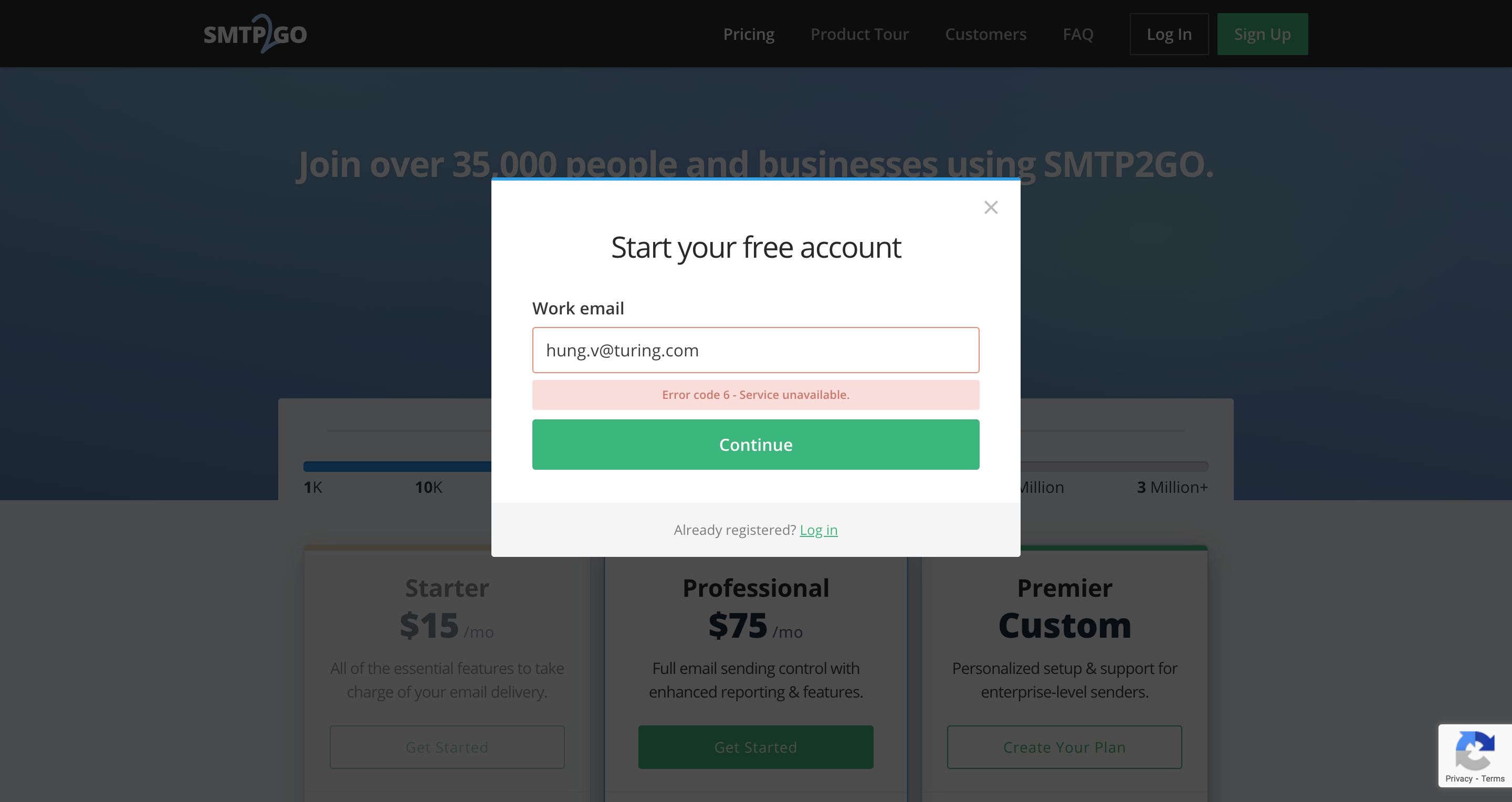 Hello @dannyroosevelt, for the context, I could not create SMTP2GO account to test end-to-end flow. After sending an email to SMTP2GO customer support, I got the response back saying that Turing domain was suspended a year ago due to previous usage, also the Customer Support Agent does not reply on the test account request from me. I would suggest to merge this and monitor for error usage. What do you think? |