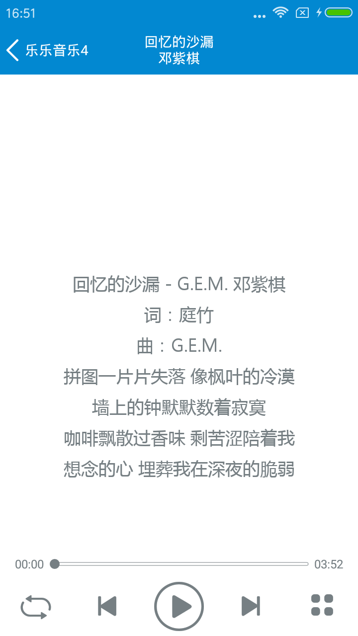 #乐乐音乐4.0简洁版 开发环境:android studio #支持音频格式 mp3、ape、flac、wav等 #ape格式 ape格式用了网上的jmac-1.74.jar来解码, 该jar包在java端解码还是比较快的,在android机上解码会有一定的耗时,算是有点瑕疵吧