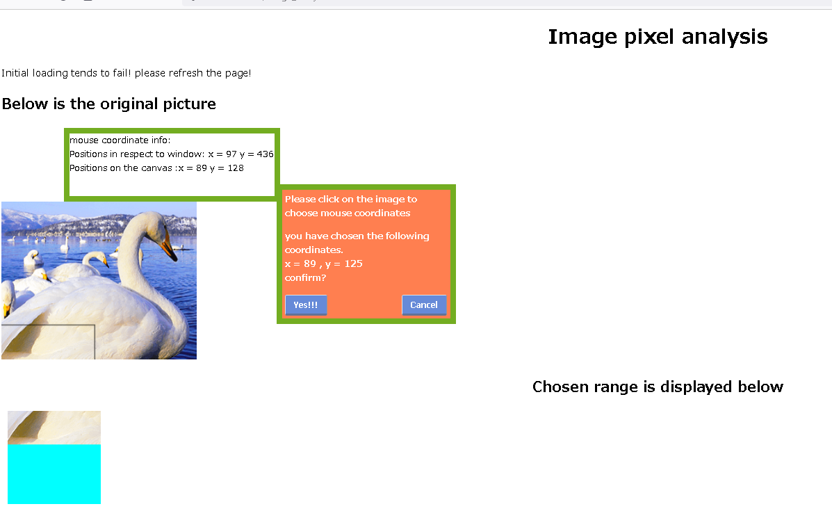 see_pixel_values instructions On windows 10 1. enable iis (internet information service ) web server 2. Once iis is enabled, put html, css and script files in document root 3. Editing image filenames in html and javascript files. you need to provide image in html and javascript files. In html file. In javascript file. 3. Open up the web browser and type the address like shown below Web page will be displayed like below. You can click the image and choose the coordinates pixels for the choosen coordinates will be displayed like below