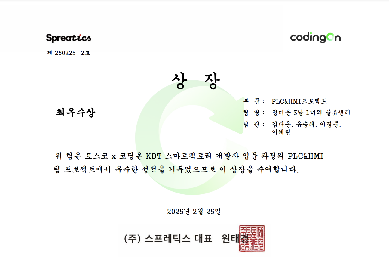 - PLC&HMI 팀 프로젝트 최우수상