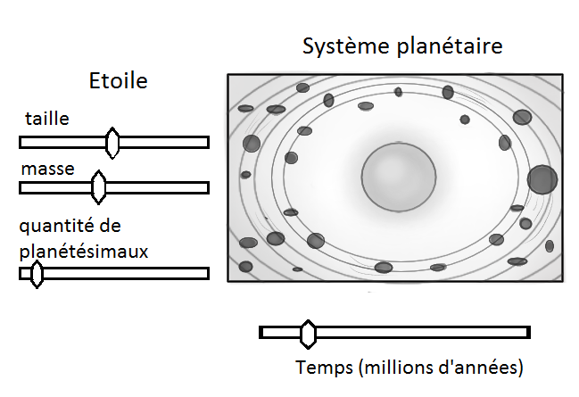 -Un curseur temps. Cela nous permettra d'itérer nos algorithmes sur plusieurs dizaines de millions d'années.