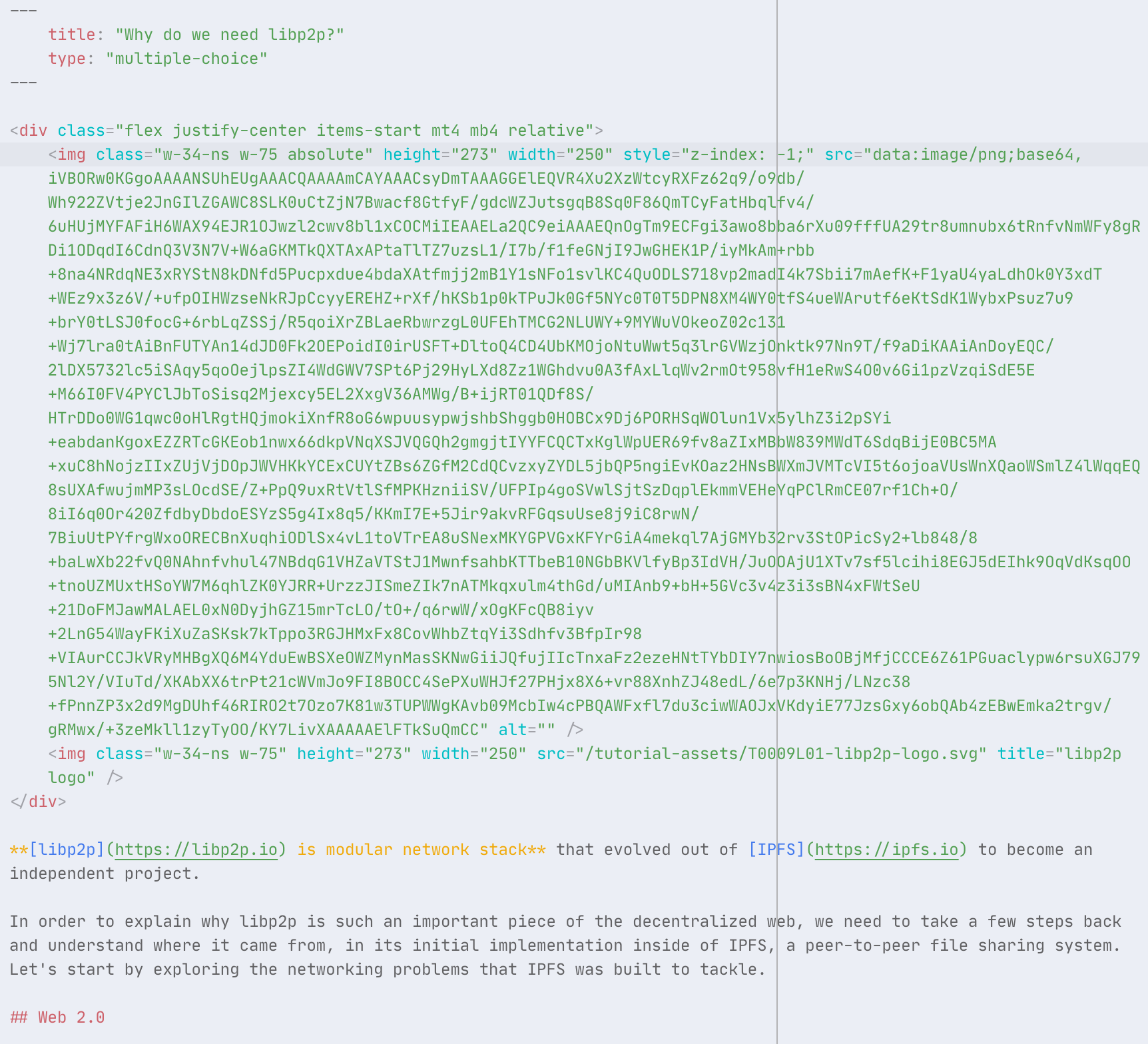 @yusefnapora Thanks for that catch! Assume you're still working on the copy edits you mentioned? @zebateira On Tuesday, do you want to give me a Figma tutorial so I can make the social tile (and blog header image)for this tutorial without breaking anything? I'm leaning towards waiting to create a libp2p course until we have our next libp2p tutorial, so this and that could both go in it. Would the content addressing and anatomy of a CID tutorials be relevant in a libp2p course or is the content addressing pretty separated from the networking bits? I assume that this libp2p tutorial should be included in our IPFS and Filecoin courses because it's under the hood for those, but not for Multiformats or IPLD. Does that sound right? From which of our existing tutorials would it make sense to link to this one in the resources page? I'm planning to be out on Monday but will do my best to carve out time to draft the blog post and newsletter announcement on Tuesday, maybe aim to launch on Thursday after wrapping up edits here and in those announcements? |
