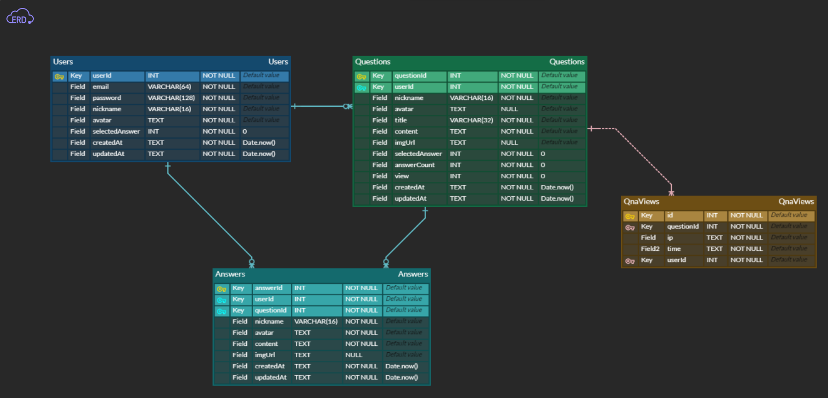 db table에 없는 데이터를 만들어 가공하여 FE에 보내주어야 할 때 원하는 데이터를 어떻게 뽑아서 가공해야할지 난감했습니다. 개발중인 환경이고 사이즈가 작은 프로젝트이니 간단히 필요로하는 항목을 테이블에 추가해주면 해결할 수 있었지만, 모종의 이유로 table 수정이 불가능 할 경우를 가정하여, 현재 table 상황에 맞추어 코드를 작성해보는 방향으로 도전해보기로 했습니다. 상황에 따라 N개의 Object를 만들고 DB에 접근하여 필요한 데이터를 뽑아 가공하여 그것들을 담은 Object를 만들고 Array에 담아주는 반복문을 이용하여 해결했습니다. (./service/answer.service.js/'userId기준 답변을 한 질문 목록 불러오기 + 상태')